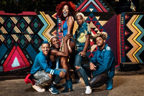 O figurino é assinado pela marca africana MaxHosa by Laduma e temos um painel da grafiteira Criola com 18 metros, que a partir de agora enfeita a comunidade do Vidigal. Uma mistura de cores que representa toda a diversidade do Brasil.