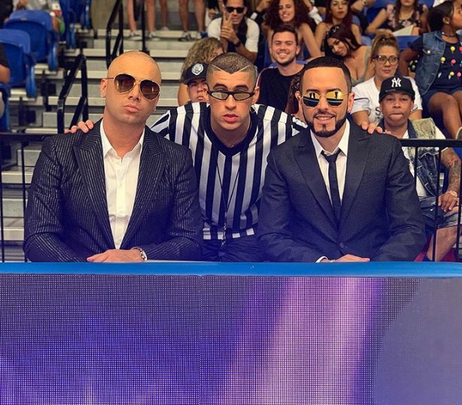 A maior dupla de reggaeton Wisin y Yandel se juntam ao novato e aclamado Bad Bunny em “Dame Algo”.
