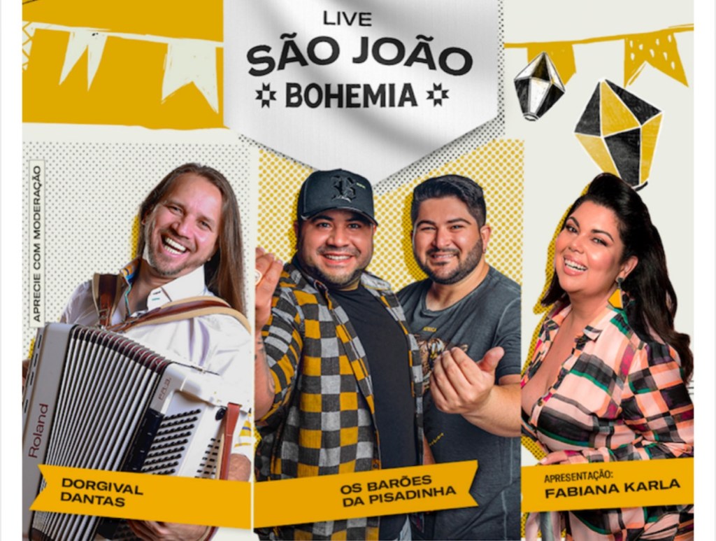 Já Rodrigo, vocalista da banda Barões da Pisadinha, conta “Esse é o segundo ano sem São João presencialmente. Mas a internet veio pra ajudar e vai ter São João sim! Estamos felizes em poder levar alegria para casa das pessoas, alegrar os corações e sacudir a galera com a nossa música. Já estamos vendo os fãs fazendo os passos da pisadinha em casa”