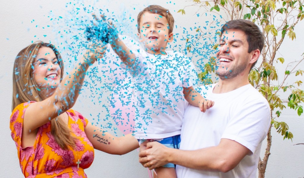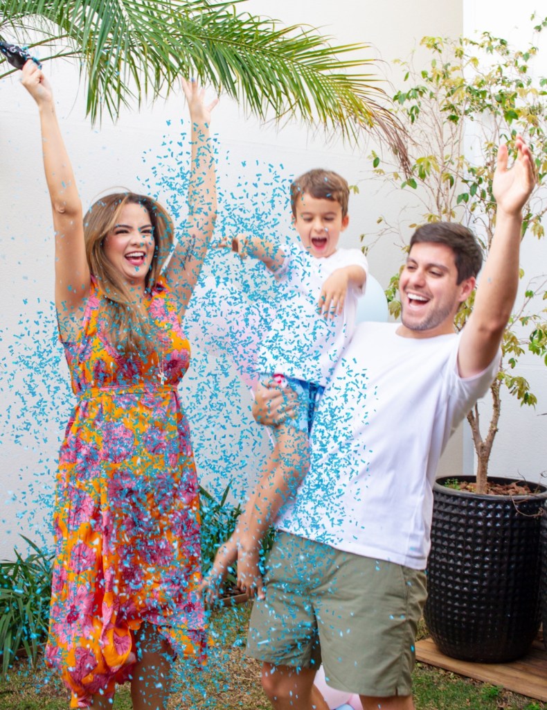 Os paisões de Pedro (4 anos) ao estourarem bexigas descobriram que estão esperando um menino, ou nascimento previsto pra Março de 2022.