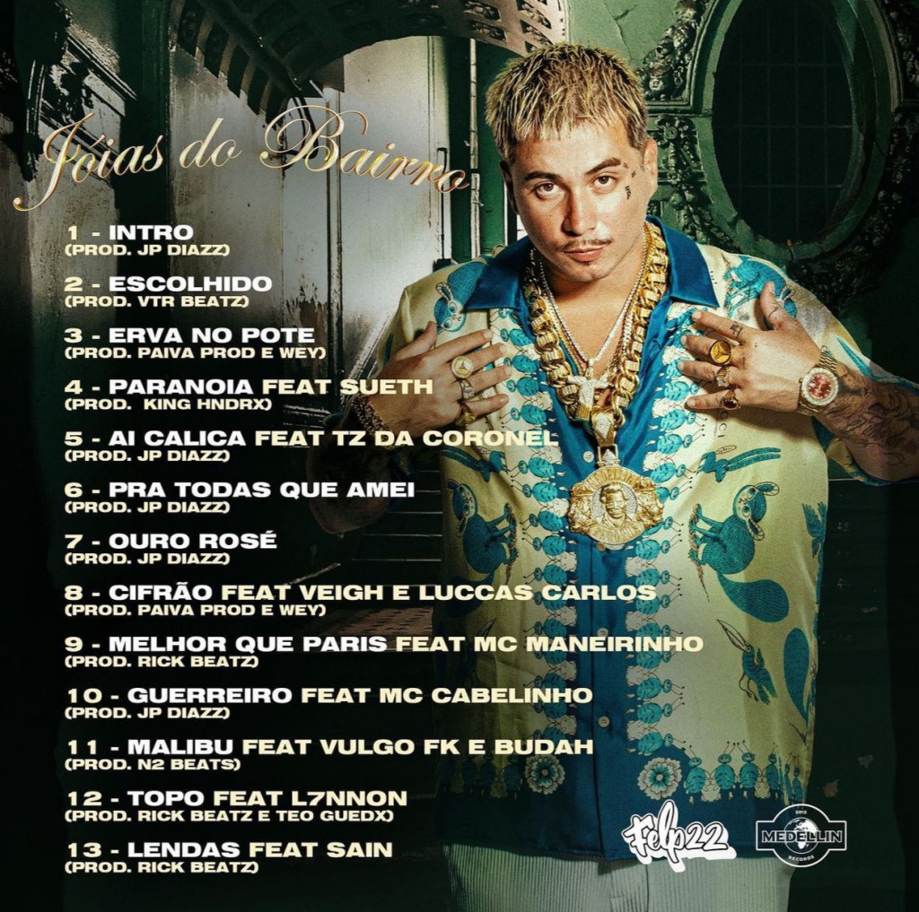 Felp 22 lança o aguardado álbum “Joias Do Bairro”, que retrata a antiga realidade do artista através da fé, amor e motivação para sair da lama como os verdadeiros diamantes que hoje enfeitam suas joias.