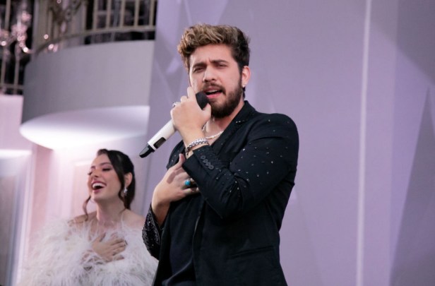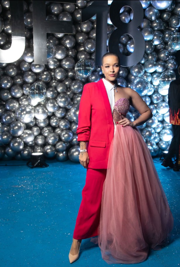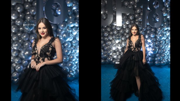 Vestindo dois looks diferentes durante o evento, um para o desfile de gala e outro para o momento das apresentações e do parabéns, Juju revela alguns detalhes sobre os trajes escolhidos pelo estilista Israel Valentim. “No primeiro figurino, a cor rosa e um pouco de transparência. Já na segunda opção que o Israel preparou, muita pedraria e brilho, dois vestidos que eu simplesmente amei”, destaca ela.