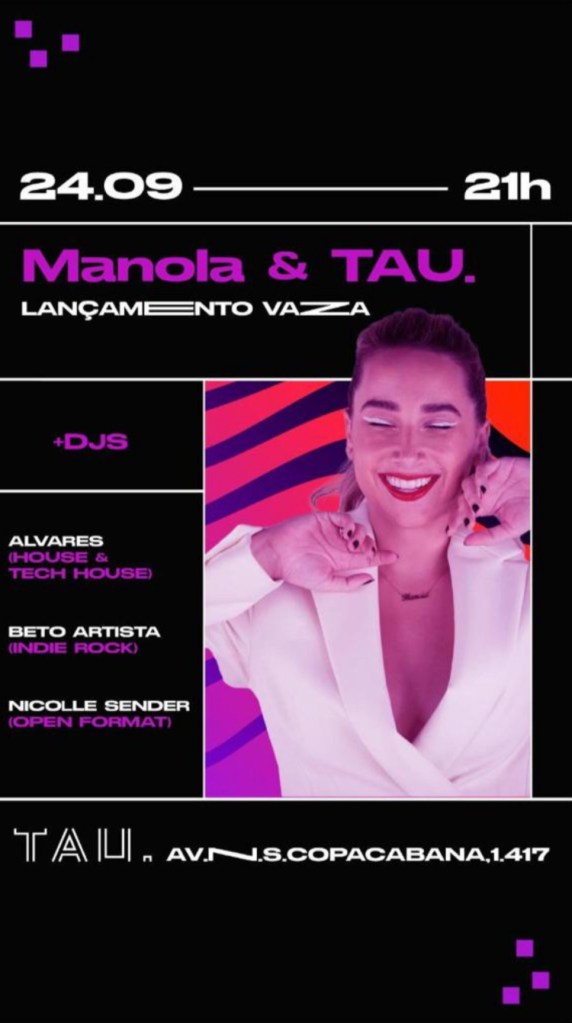 Ingressos: https://www.sympla.com.br/evento/manola-pre-lancamento-vaza-djs-sabado-24-de-setembro-tau/1693214?d=Manola