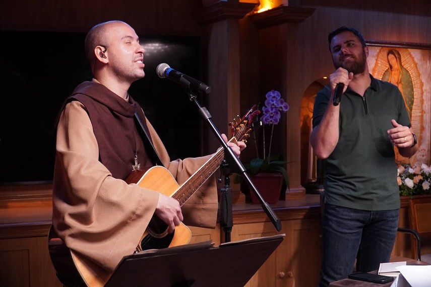 Zé Neto e esposa se unem a Frei Gilson para o Santo Rosário.