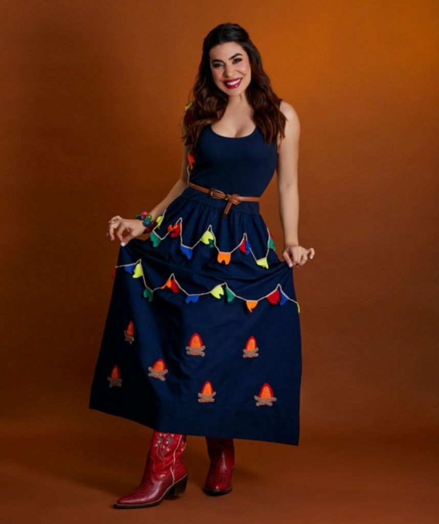 Naiara Azevedo aposta em looks confeccionados em jeans sustentável para a temporada de São João.