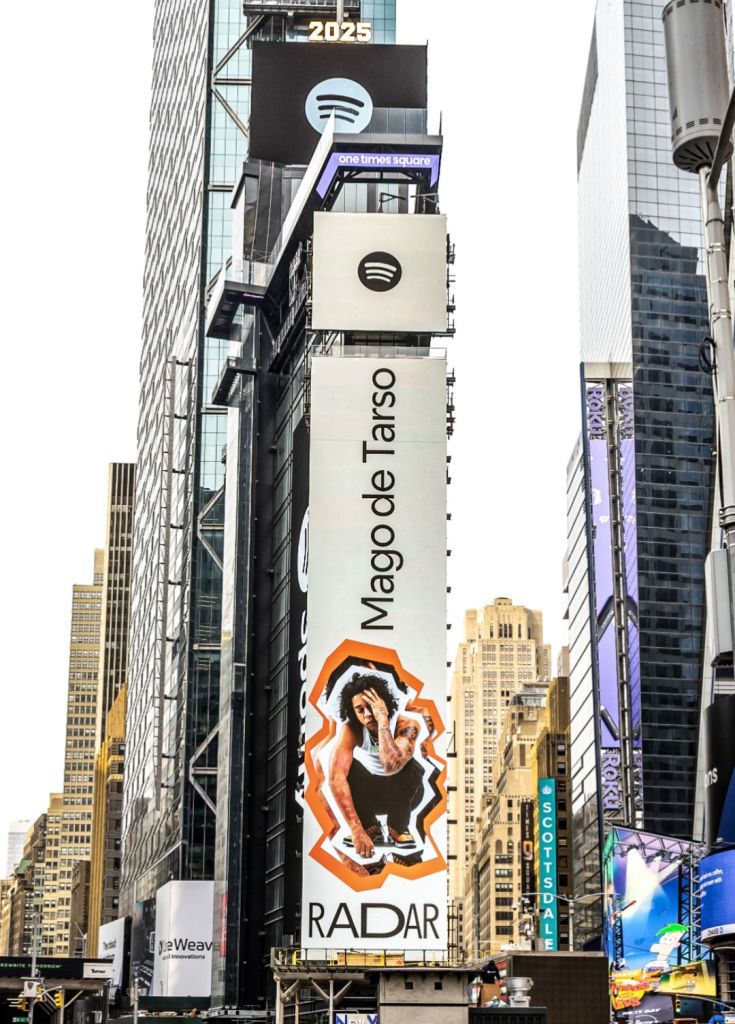 Mago de Tarso é destaque na Times Square como artista Radar do Spotify.