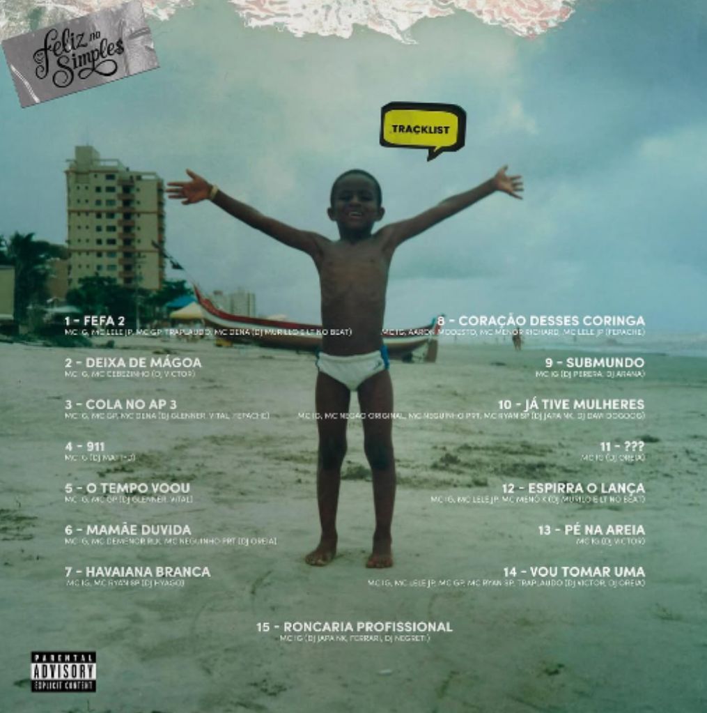 O álbum reúne 15 faixas, que transitam entre momentos de festa, reflexões e histórias reais. Entre elas estão “Fefa 2”, com participações de MC Lele JP, MC GP, Traplaudo, Dena e DJs Murillo & LT, além de “Deixa de Mágoa”, “Cola no Ap 3”, “911”, “Mamãe Duvida”, “Havaiana Branca”, “Coração Desses Coringa”, “Submundo”, “Já Tive Mulheres”, “Espirra o Lança”, “Pé na Areia” e “Vou Tomar Uma”. Cada faixa destaca o estilo direto e narrativo que se tornou marca registrada de IG, letras que conversam com a rua, o amor, o desejo e a superação, embaladas por batidas que traduzem o ritmo das comunidades de São Paulo.